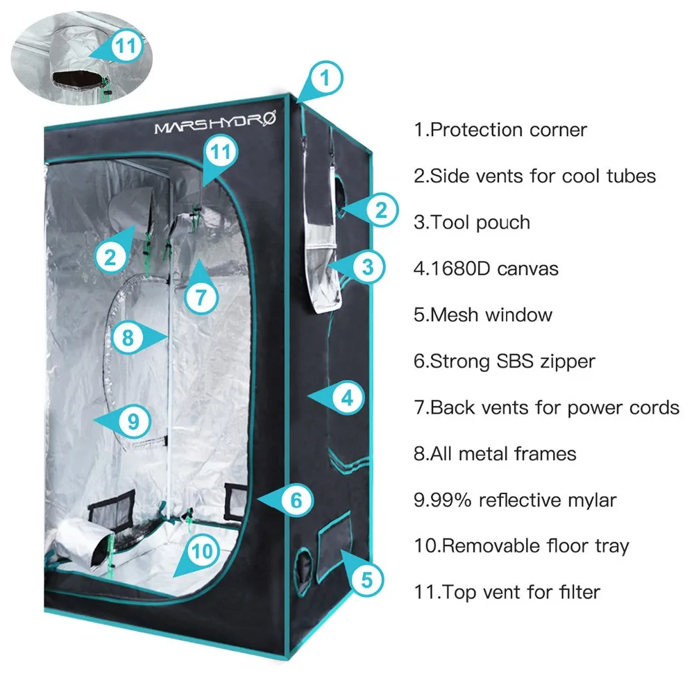 Promo 1680D Marshydro Grow Tent/Box 120*120*200 cm for Hydroponics Indoor LED Grow System