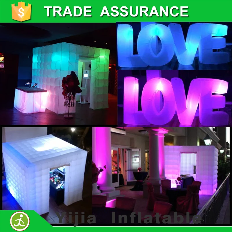 Special Product Free shipping High quality portable photo booth led inflatable cube tent with led letters
